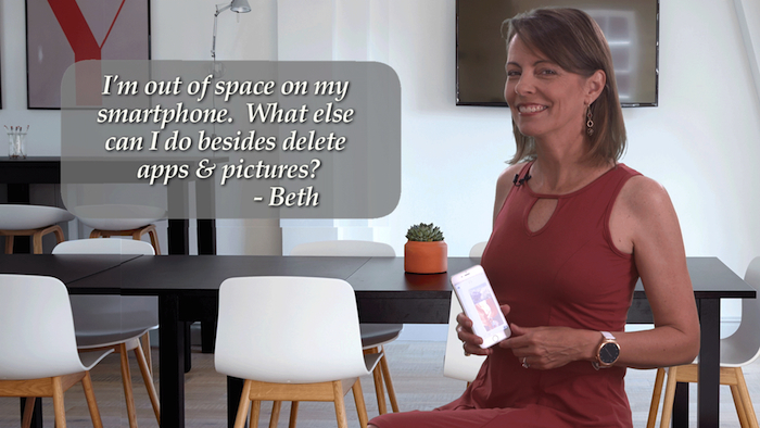 Beth asked, I am out of space on my smartphone. What else can I do besides delete apps and pictures?